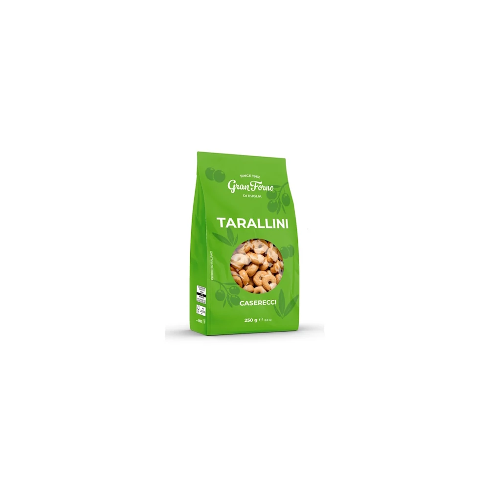 A Tarallini apró, ropogós, sós karikák. Tipikus olasz specialitás Puglia régiójából, búzalisztből, extra szűz olívaolajból és fehérborból készül. Finom falat borral vagy sörrel. Olaszországban az aperitivó során fogyasztják, ami egy délutáni szünet egy itallal és valami kis harapnivalóval vacsora előtt.