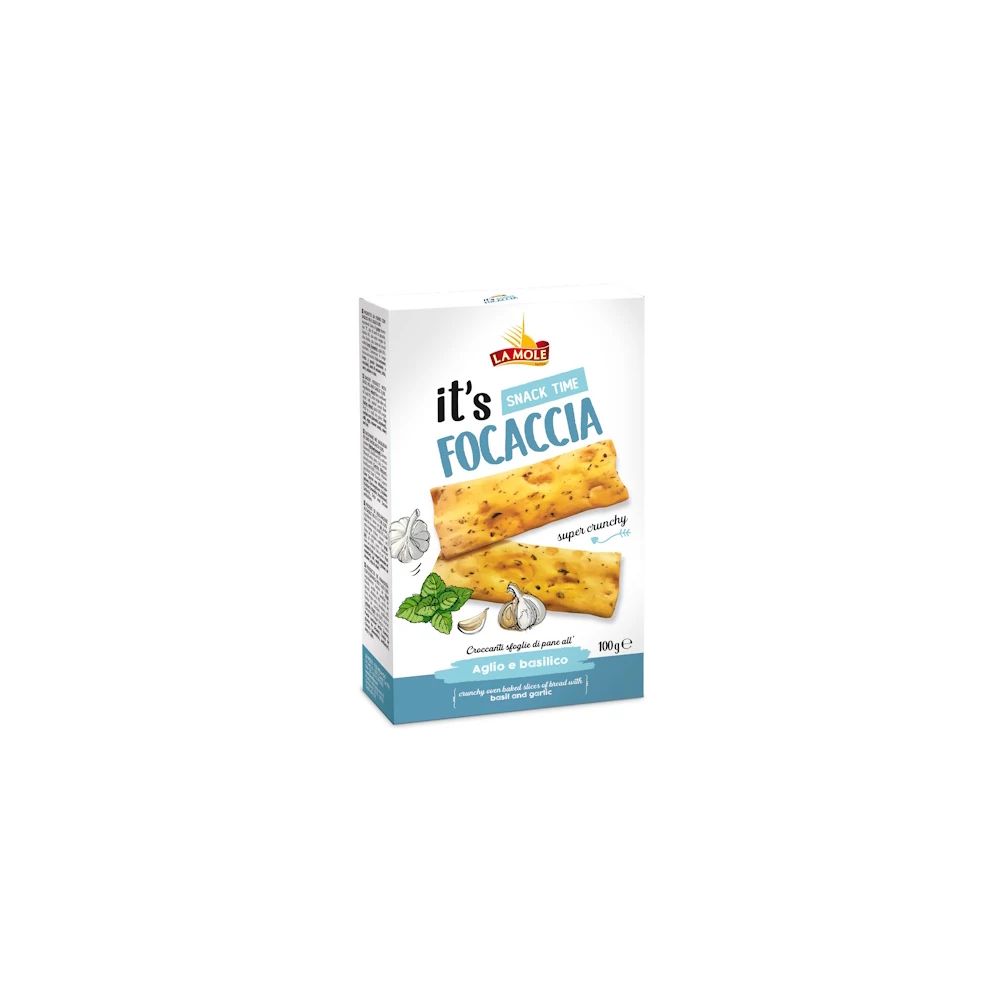 A LaMole vékony és illatos, sütőben sült kenyérszeletekben sikeresen újraalkotta a kézműves focaccia intenzív ízét, ötvözve az extra szűz olívaolaj finom aromáját a liszt, az élesztő, a víz és egy csipet só egyszerűségével, fokhagymás-bazsalikomos ízesít