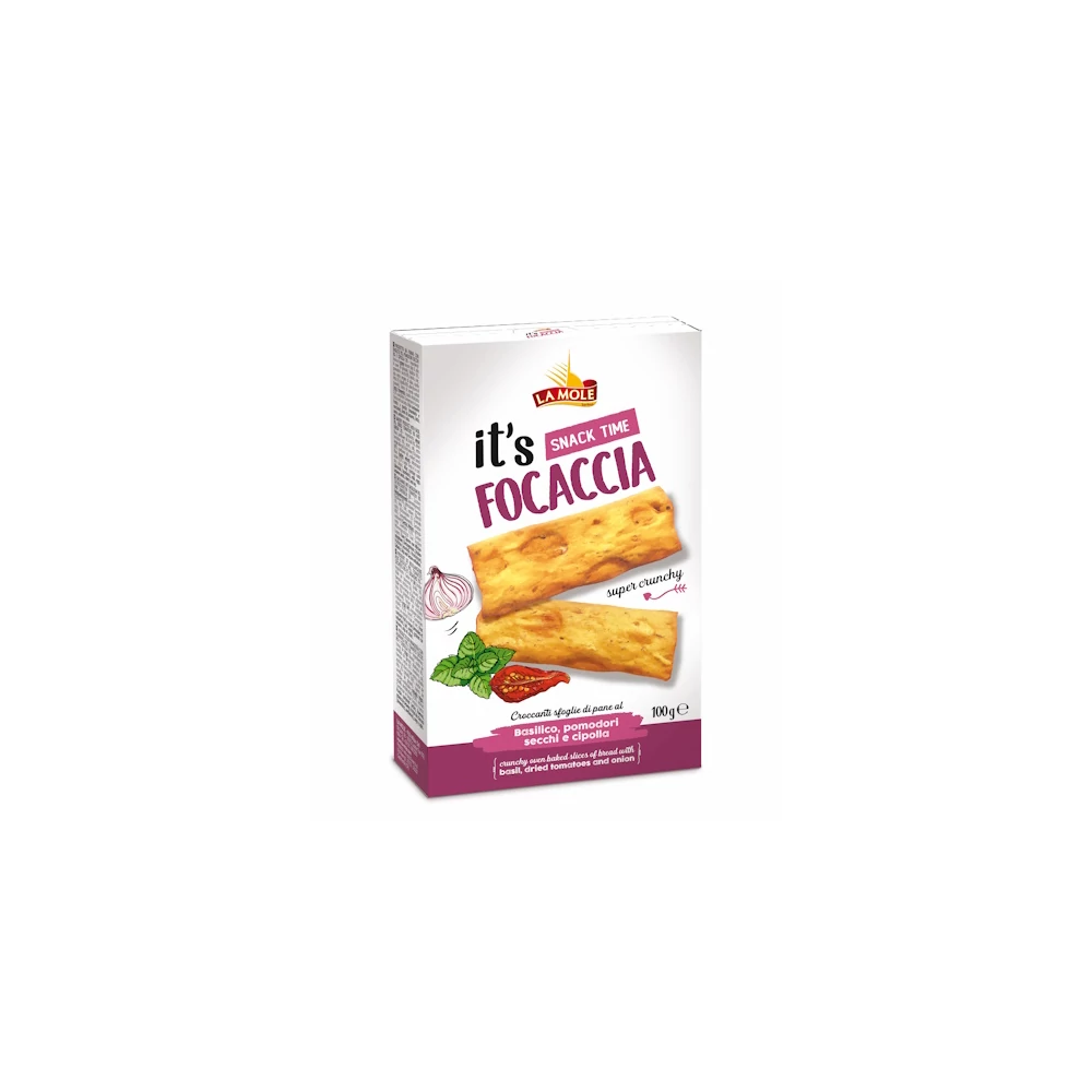 A LaMole vékony és illatos, sütőben sült kenyérszeletekben sikeresen újraalkotta a kézműves focaccia intenzív ízét, ötvözve az extra szűz olívaolaj finom aromáját a liszt, az élesztő, a víz és egy csipet só egyszerűségével, mediterrán paradicsomos ízesítéssel.