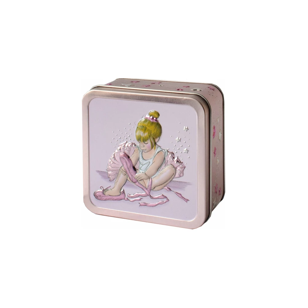 Prémium minőségű angol mini csokoládé darabos vajas kekszek, színes dombornyomott kicsi balerinát ábrázoló fémdobozban. Nem tartalmaz mesterséges színezéket, aromát vagy tartósítószert. Alkalmas vegetáriánusok számára.