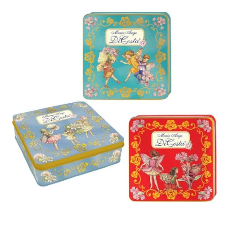 Kiváló minőségű olasz tejcsokoládé pralinék, két ízben,/ tejkrémmel és kakaókrémmel töltve/, dombornyomott három különböző színből választható fémdobozban.